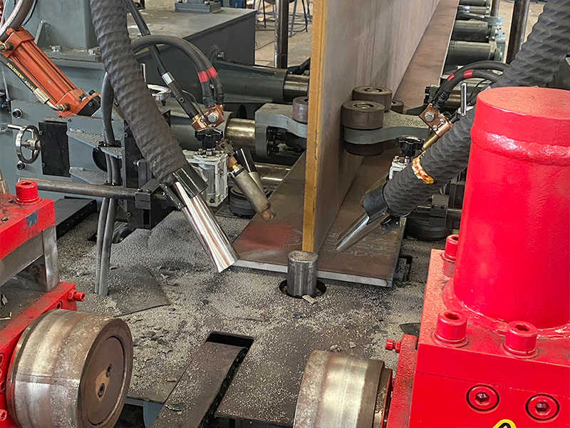 H型钢组焊矫一体机先进的H型钢焊接生产设备,集H型钢自动组立、二氧化碳或埋弧焊接、缘板焊接变形矫正于一体。设备占用空间小,节省劳动力,生产效率高,是生产轻型H型钢和T型钢较为理想的设备。
